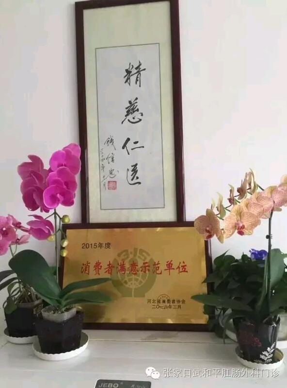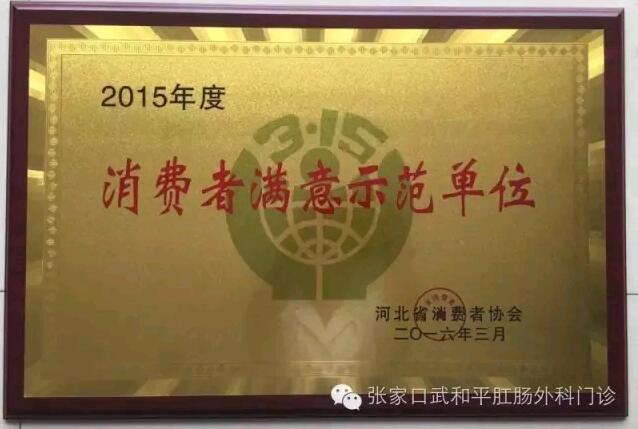 2016年6月28日武和平肛肠外科诊所荣获河北省消费者协会颁发的2015年度《消费者满意示范单位》荣誉称号!