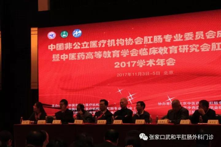 承中国共产党第十九次党员代表大会东风,中国非公立医院机构协会肛肠专业委员会成立大会和中医高教临床教育研究会肛肠分会学术年会于2017年11月3日在首都北京隆重举行,来自全国各地的肛肠界专家学者相邀北京,我张家口市武和平肛肠诊所医生武健也应邀参加。本次会议秉承“传承创新、和谐协作、科学发展、共创辉煌”的宗旨,共同探讨交流肛肠领域之科学管理、临床实践和人才培养。