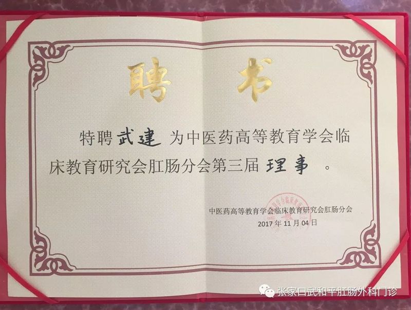 武健医生通过参加此次会议,必将在诊治肛肠科常见病、多发病方面有创新和发展,为解除肛肠病患者的病痛做出更大的贡献。