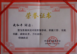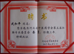 张家口肛肠门诊/武和平被北京疑难病协会肛肠分会聘为副会长