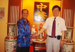 在槟城佛总医院和马来人合影